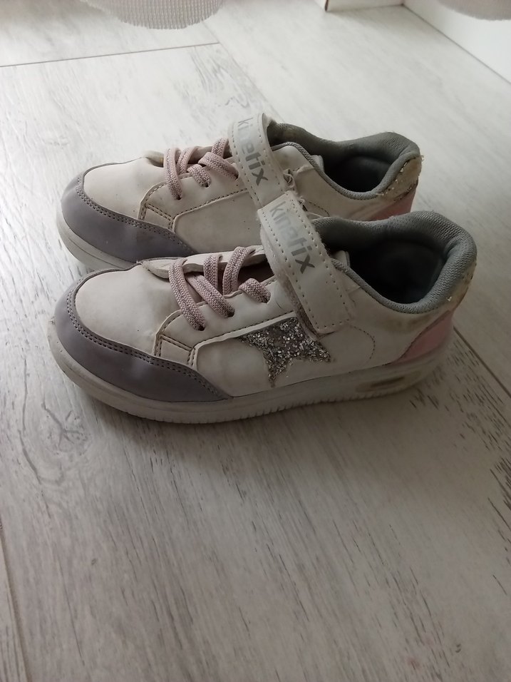 Beyaz ve gri renkli, cırt cırt kapamalı kız çocuk spor ayakkabısı. Yıldız detaylı ve rahat malzemeden üretilmiştir. ⭐