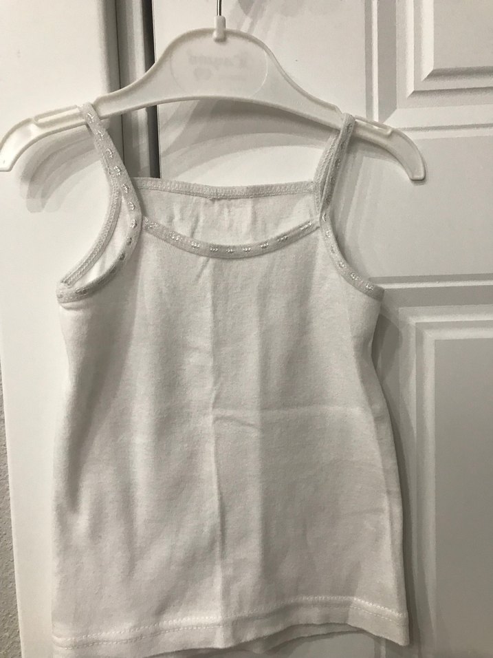 İnce askılı, beyaz kız çocuk atlet. Yumuşak ve rahat kumaştan, sade detaylarla tasarlanmıştır.