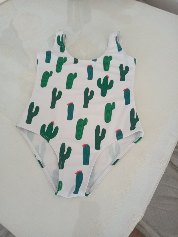 Kız Çocuk Beyaz Kaktüs Desenli Mayo