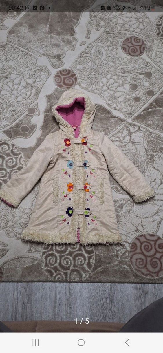 Kapüşonlu, nakışlı ve kürk detaylı beyaz kız çocuk kabanı. Yumuşak ve sıcak dokusuyla bohem tarzı yansıtır.