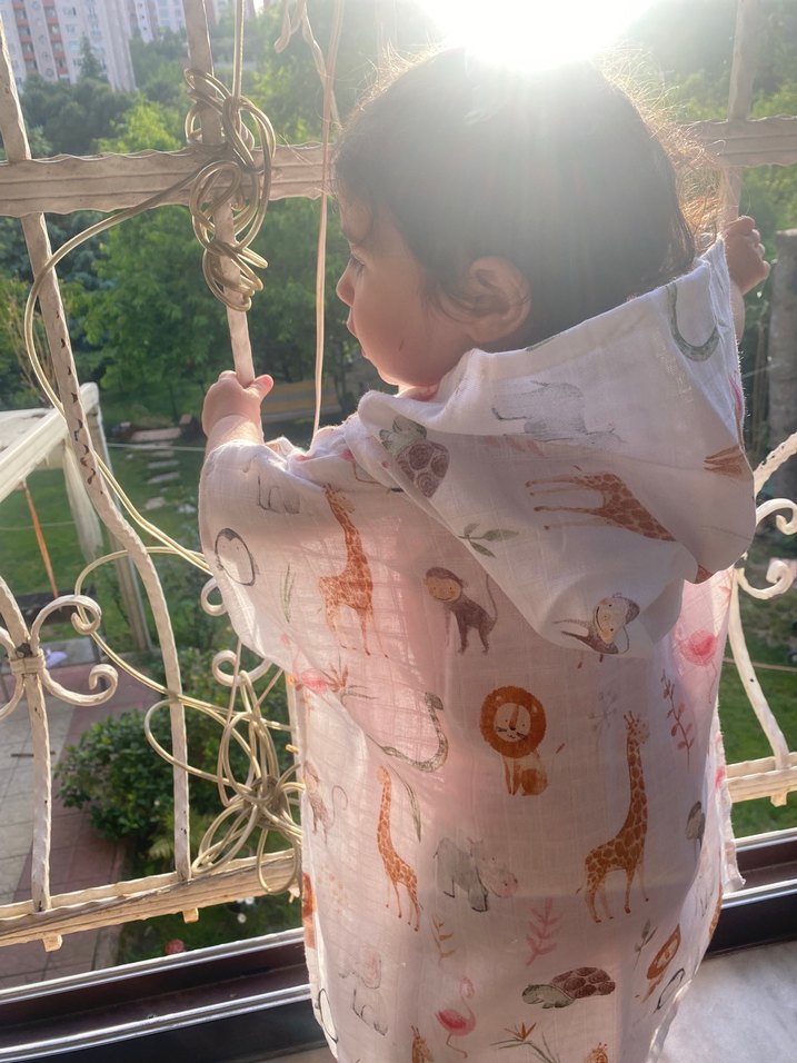 Pamuk malzemeden yapılmış, kapüşonlu ve bol kesim kız çocuk panço. Beyaz ve transparan, bohem tarzda hayvan desenleriyle süslenmiş. Erkek çocukları içinde uygundur. Sıfır ve etiketli gönderilecektir.