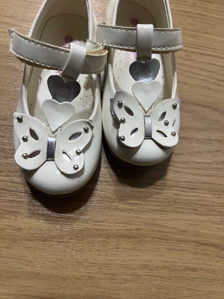 Beyaz renkli, kelebek detaylı ve tokalı kız çocuk babetleri. Kauçuk malzemeden üretilmiş, sade ve bohem tarzda tasarlanmıştır. Hamur altı yapışmış cıkıyo sayılı giyildi