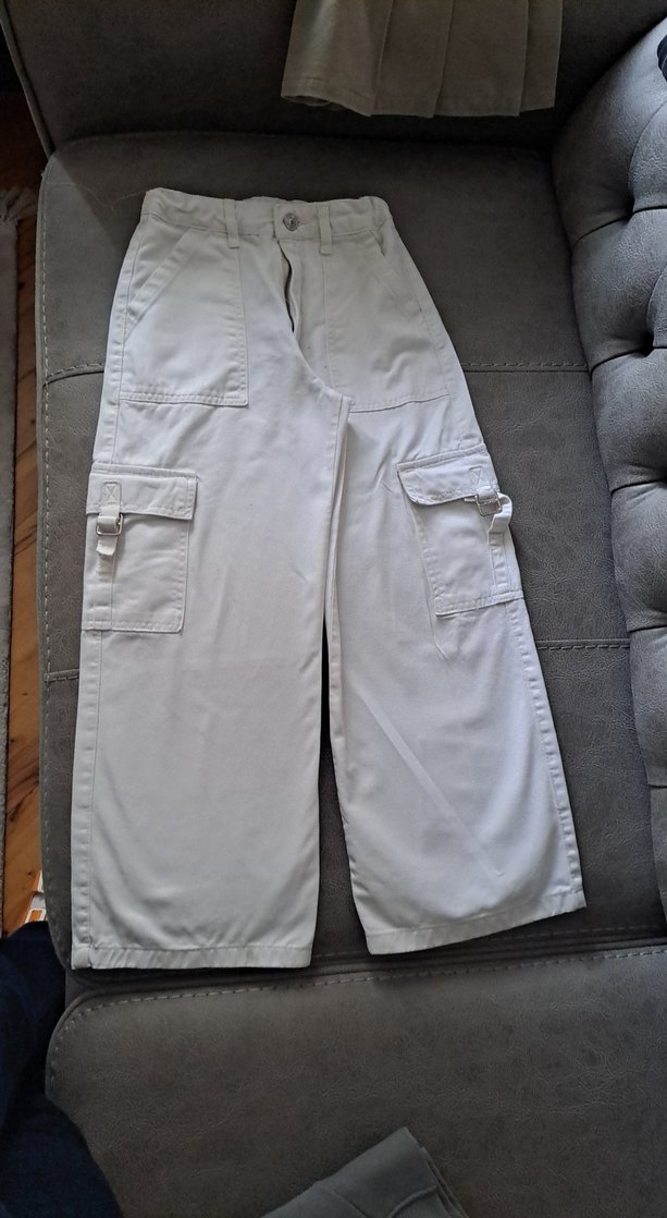 kız çocuk Beyaz Kemerli Rahat Kumaş 9-10 yaş Pantolon