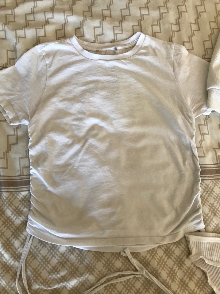 Keten kumaştan, kısa kollu, tek renk beyaz kız çocuk bluz. Salaş kesimi ve kayık yaka ile sade ve şık bir görünüm sunar. Giyildi yıkandı temiz kullanıldı sağlam birlikte FİYATIDIR diğerlerinin kusurları yıkandığı için kumaşları esnedi potluk yapıyor L beden beyaz badide birde kolunda ufak el dikimi var külot giyilmeden yıkandı lastikleri bu şekilde