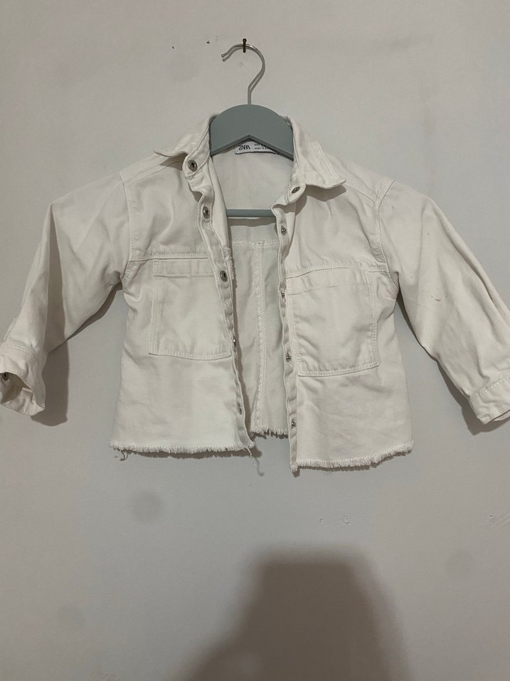Kız Çocuk Beyaz Keten Düğmeli Ceket