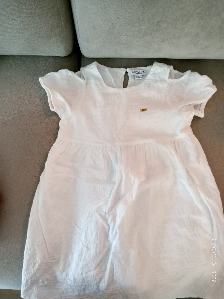 Kız çocukları için keten kumaştan, kısa kollu, düğmeli ve salaş kesim beyaz elbise. Bohem tarzda, sade ve hafif görünümlü.