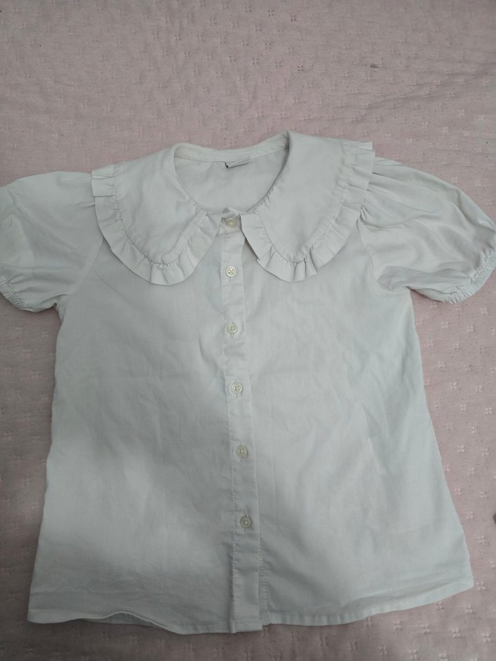 Kız çocuk keten kumaştan yapılmış, yakasında fırfır detaylı, kısa kollu beyaz gömlek. Rahat ve bol kesimdir.