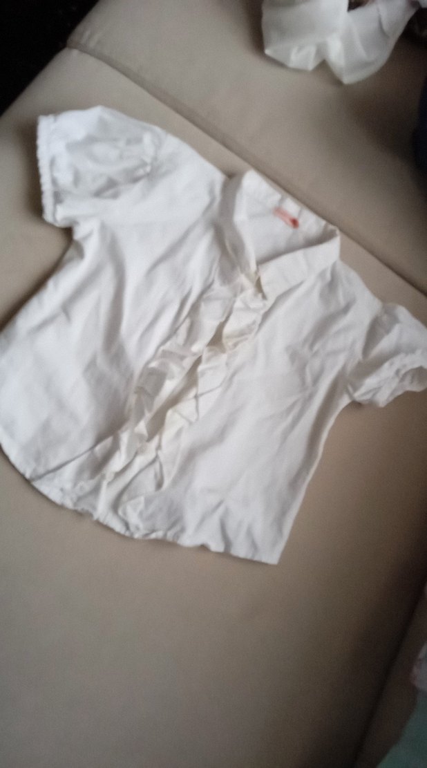 Kız çocuklar için beyaz keten kısa kollu gömlek. Yaka kısmında fırfır detaylar ve yakalı tasarım bulunur. Bol kesim ve sade görünüm sunar.