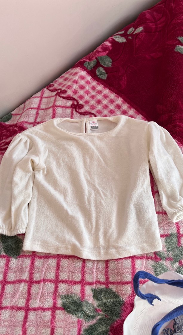 Kız Çocuk Beyaz Keten Uzun Kollu Tişört
