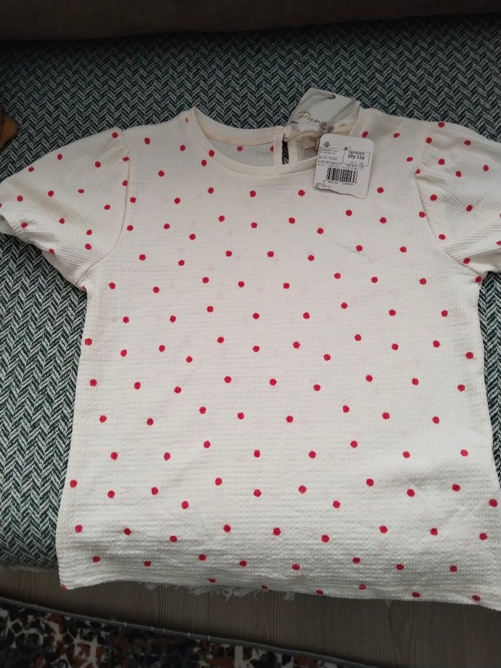 Kız çocuk tişörtü, kısa kollu ve bisiklet yaka tasarıma sahip. Örme pamuktan, beyaz zemin üzerinde kırmızı puantiyeli, rahat kesim ve günlük sokak stili için uygun.LCW ürünü kullanılmamıştır 10-11 yaş