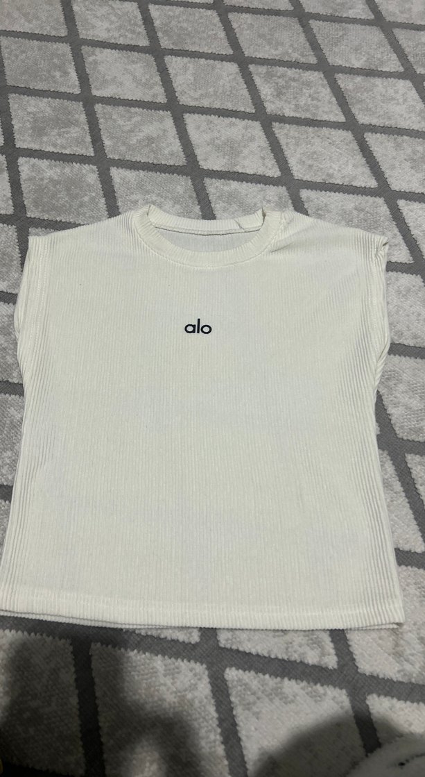 Kız çocukları için beyaz kısa kollu, pamuklu, yuvarlak yaka ve bol kesim tişört. Önünde sade 'alo' baskısı bulunur. Rahat ve günlük tarzda. Hiç giyilmedi standart esnek kumaş standart bedenlidir rengi hafif krem rengidir