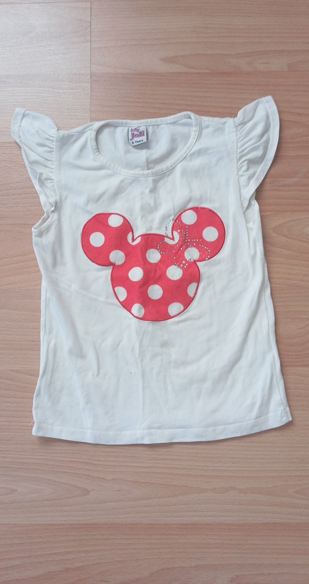 5-6 yaş uyumlu.Kız çocuk beyaz kısa kollu tişört, renkli baskı ve düğmeli detaylara sahip. Pamuklu, bol kesim, yuvarlak yaka, sokak stiline uygun. dolabima göz atmayı unutmayın.