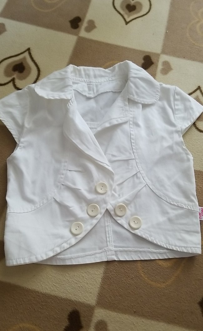 Kız Çocuk Beyaz Kısa Kollu Düğmeli Bolero