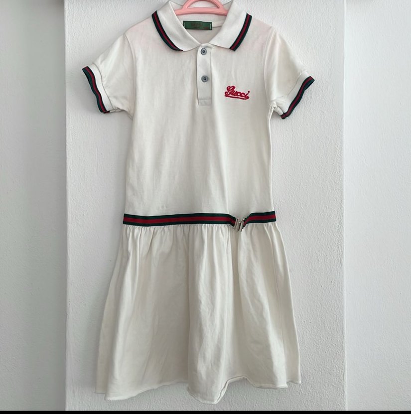 Kısa kollu, düğmeli ve nakış detaylı beyaz pamuklu, fitted kesim kız çocuk elbisesi. Pastel renk vurguları ile trend sokak stili görünümü sunar. Polo kumaş,gucci marka..6-7-8 yaşa kadar uyumlu..hiç kullanılmadı,giydirmek için etiketini çıkartıp yıkadım.ama kızım giymek istemedi..