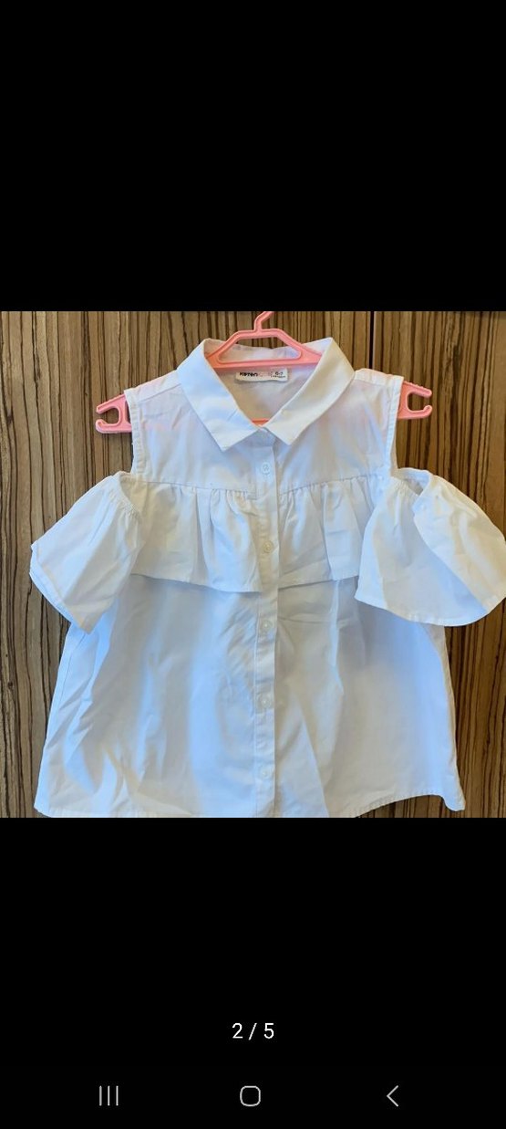 Beyaz pamuklu, düğmeli kısa kollu kız çocuk gömleği. Yakalı ve bol kesim, sokak modasına uygun rahat bir stil sunar.