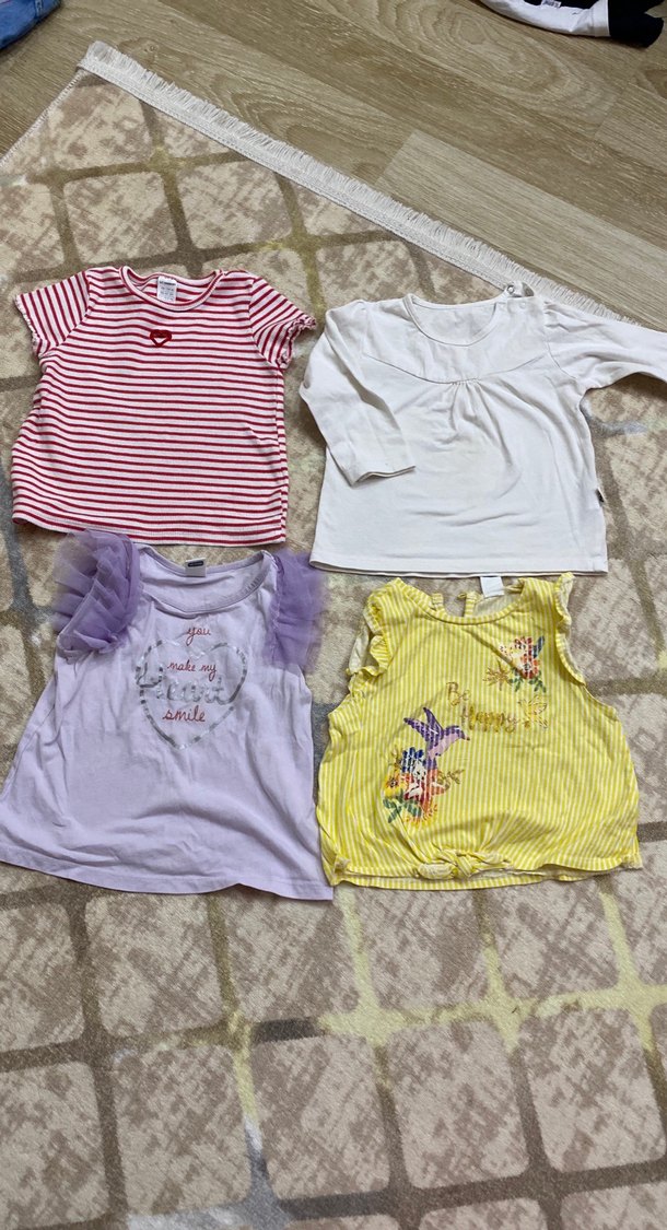 Beyaz renkli kız çocuk tişörtü, kısa kollu, yuvarlak yakalı ve bol kesimdir. Pamuklu, örme dokusuyla rahat ve gündelik bir stil sunar. Hafif sorunları var baskıları silinmiş beyaz olanda hafif sarı leke var fiyata yansıtıldı hepsinin fiyatıdır kırmızı çizgili 18 24 diğerleri 12 18