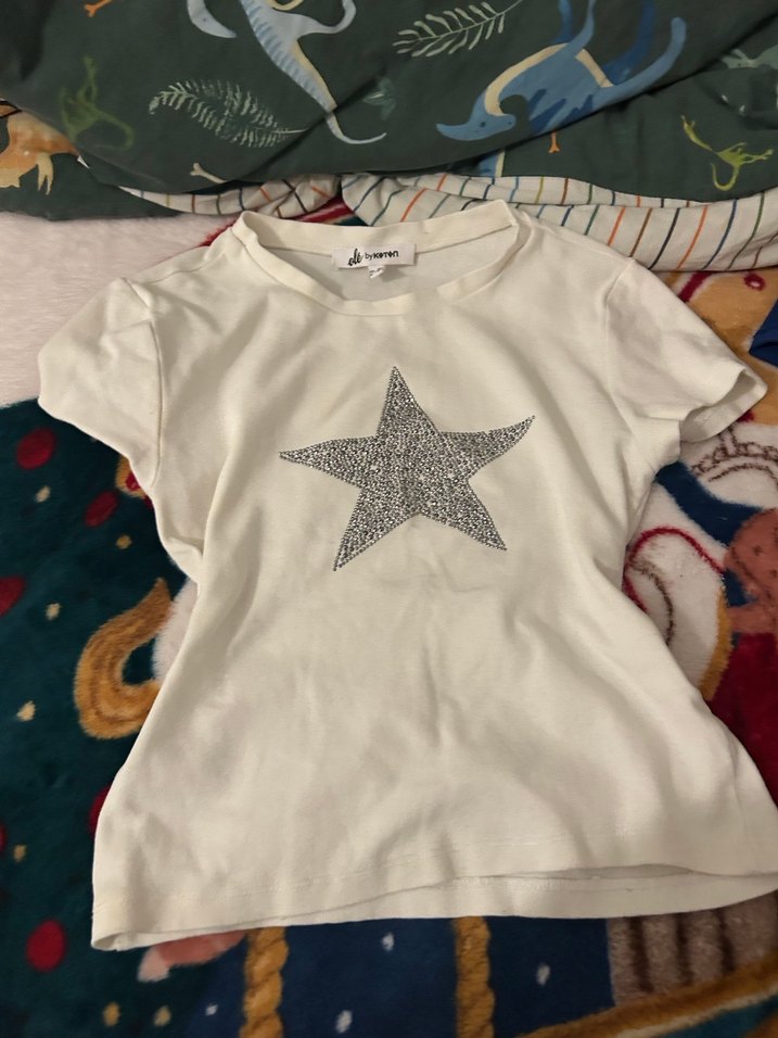 Kısa kollu, bisiklet yaka ve pamuklu kumaştan yapılmış kız çocuk tişörtü. Gri payetli yıldız baskısı ile trend bir sokak stili sunar.