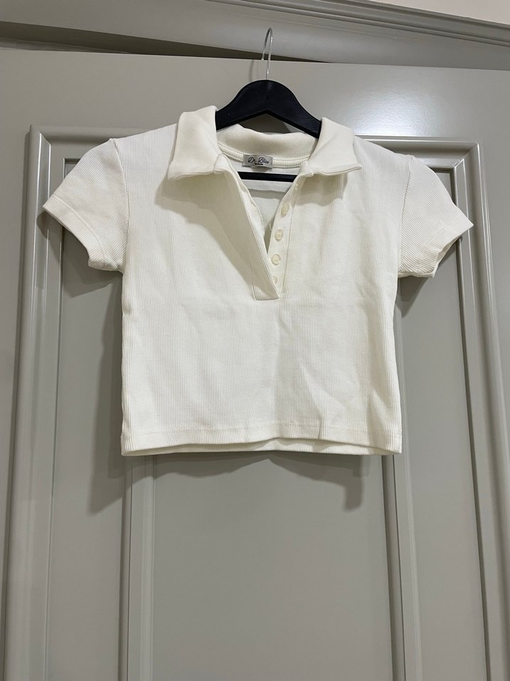 Pamuk kumaştan, kısa kollu ve yakalı, beyaz renkli, fitted kesim kız çocuk polo tişört.
