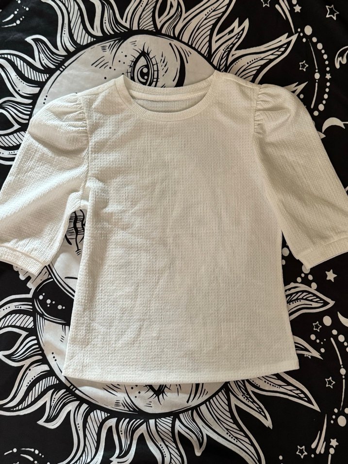 Pamuk kumaştan yapılmış, kısa kollu ve yuvarlak yakalı beyaz kız çocuk tişörtü. Rahat kesimiyle gündelik sokak stili için uygundur.
