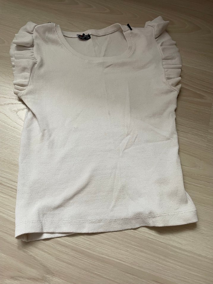 Beyaz renkli, kolları fırfırlı kız çocuk atlet. Yumuşak kumaştan üretilmiş, rahatlık sağlar.