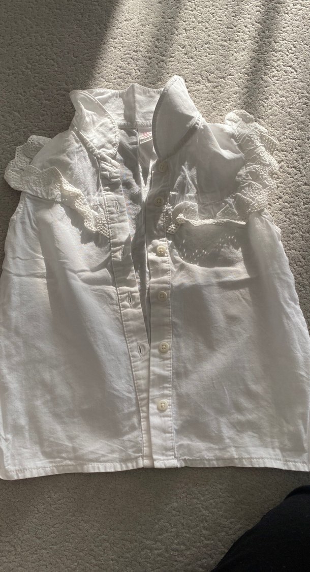 Kız Çocuk Beyaz Kolsuz Keten Gömlek
