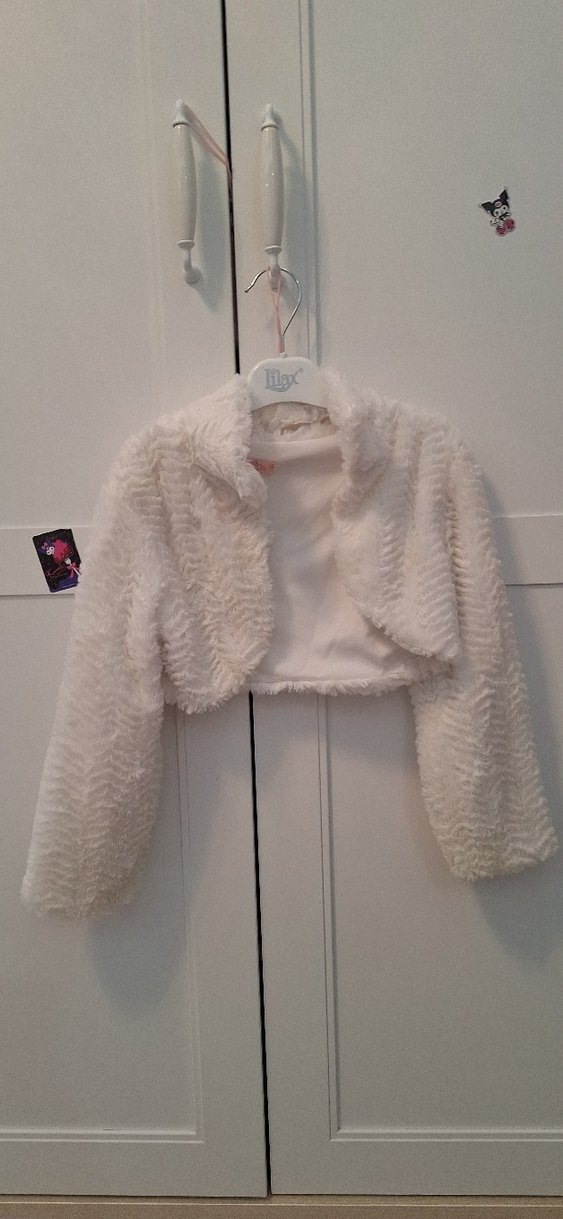 Uzun kollu, yaka detaylı kız çocuk beyaz, kürk detaylı ve yumuşak dokulu bolero. Bohem tarzına uygun şık bir parça. ❄️az giyildi cok sicak tutuyor yumusacik.7 yas icin uygundur