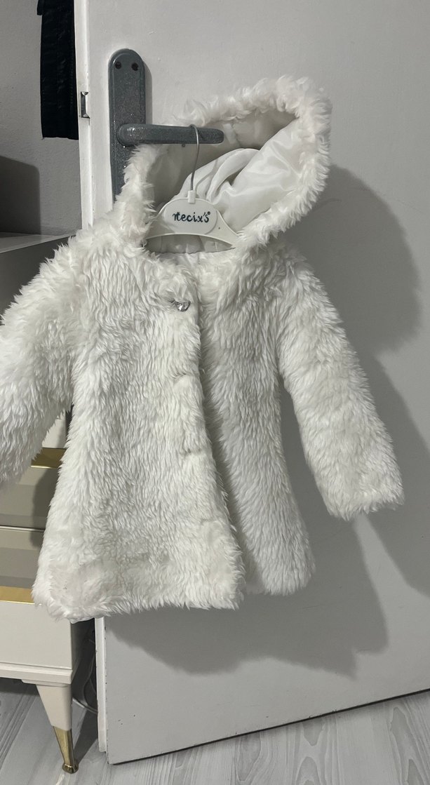 Kız Çocuk Beyaz Kürk Detaylı Mont