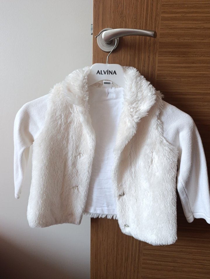 Kız çocuklar için uzun kollu, bisiklet yaka, kürk detaylı beyaz bolero. Yumuşak ve sıcak kumaştan, sokak stiline uygun sade tasarım.