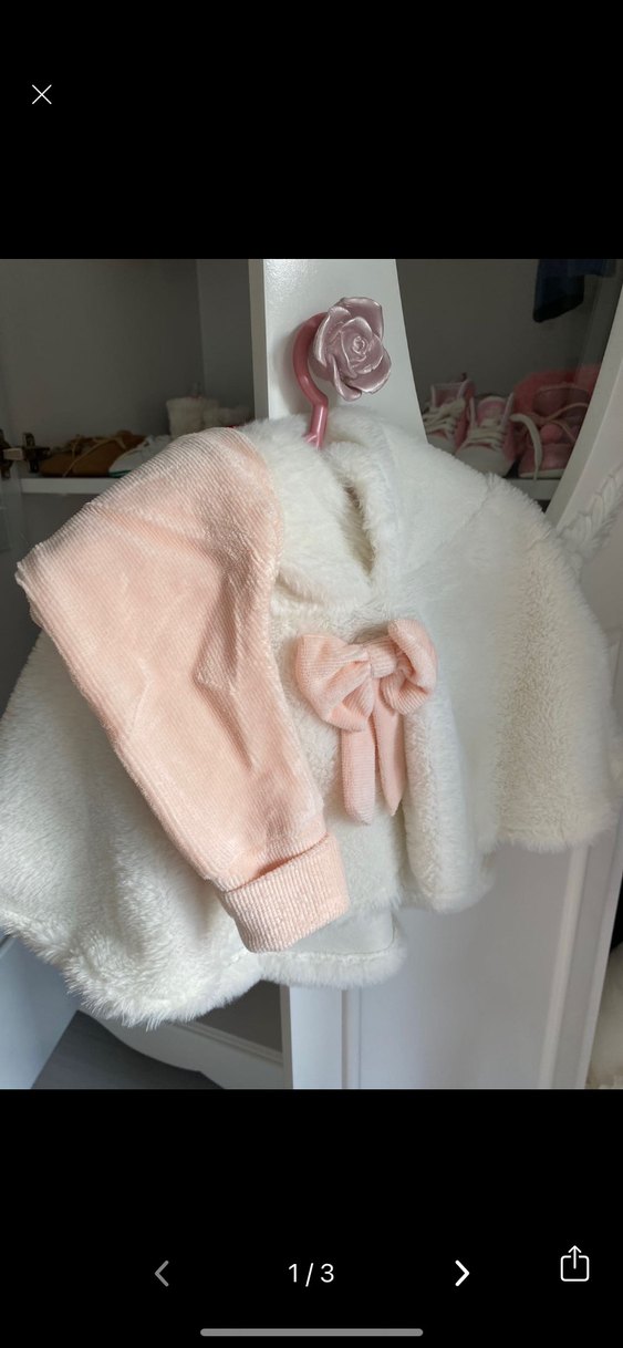 Kız çocuk için beyaz, kürklü ve yumuşak dokulu, uzun kollu, straplez yakalı, vücuda oturan bolero. Pastel tonlarda şık bir tasarım. ❄️