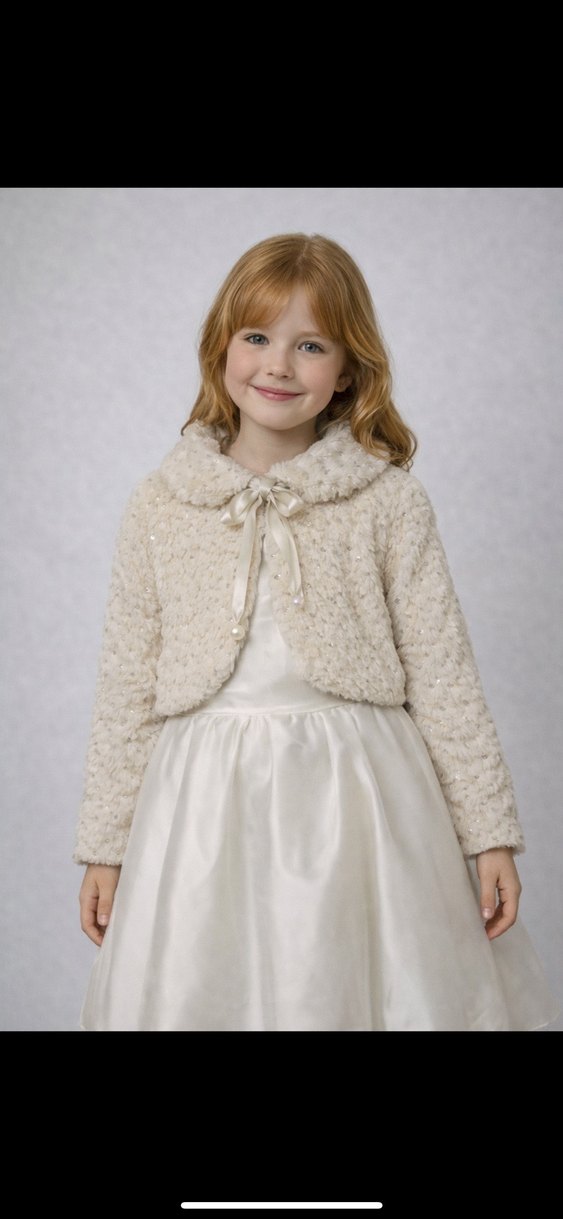 Kız Çocuk Beyaz Kürklü Bolero