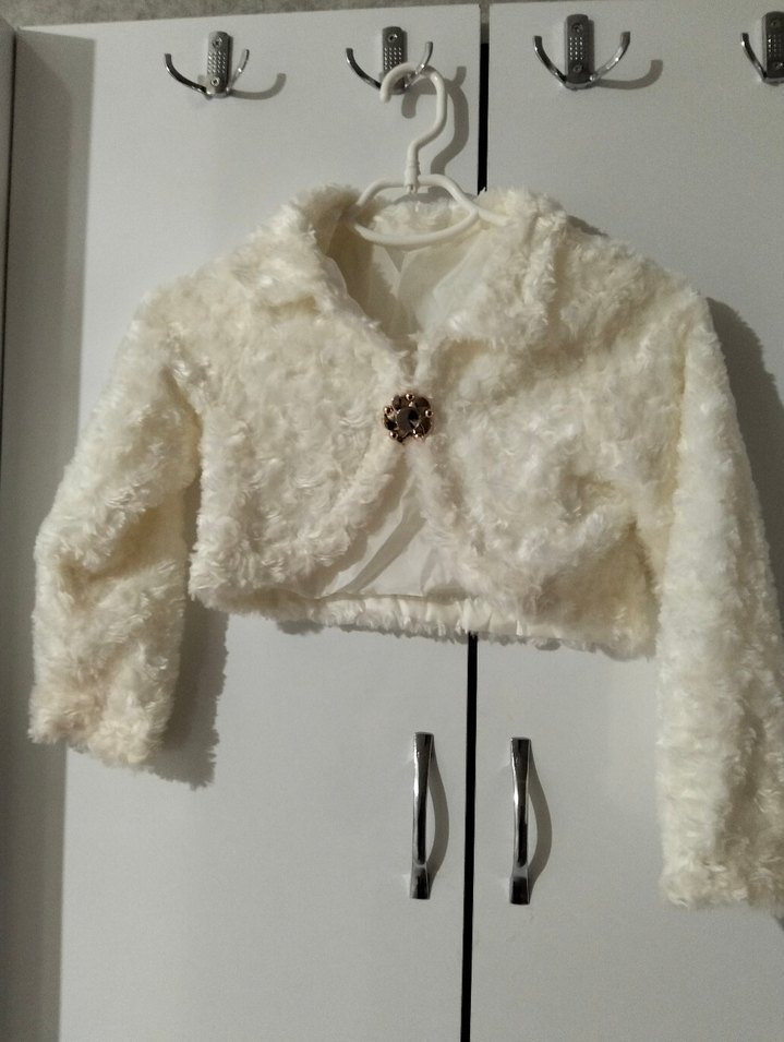 Uzun kollu, yakalı ve kürk detaylı beyaz bolero. Önünde tek bir süs tokası ile klasik ve şık bir görünüm sunar. YALNIZCA 1 KERE GİYİLDİ ABİYE ÜZERİ İÇİN ALINMIŞTI.