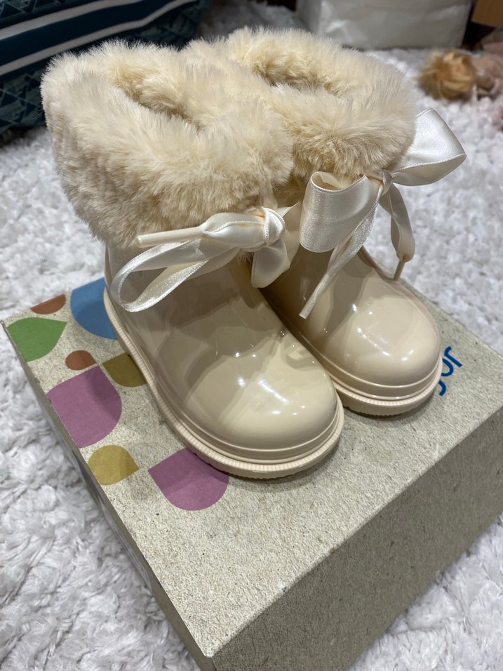 Beyaz kız çocuk botları, yumuşak kürk detaylı ve saten kurdeleli, sıcak tutan yumuşak kumaştan üretilmiştir. Trend sokak stili için uygundur. ❄️