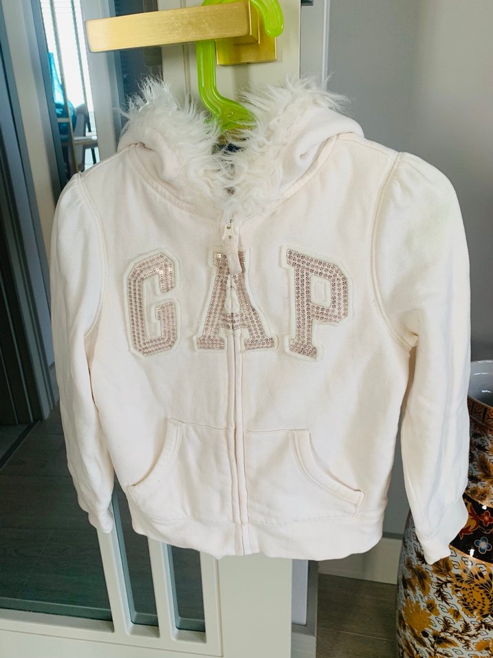 Kız çocukları için uzun kollu, kapüşonlu ve kürklü detaylı, yumuşak kumaştan yapılmış baskılı 'GAP yazılı sweatshirt. Trend sokak tarzına uygun.ürün hediye gelmişti . Beden uymadı.