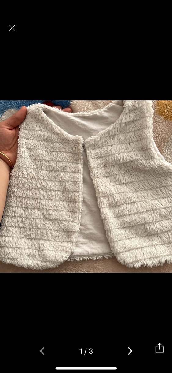 Kız Çocuk Beyaz Kürklü Kolsuz Yelek