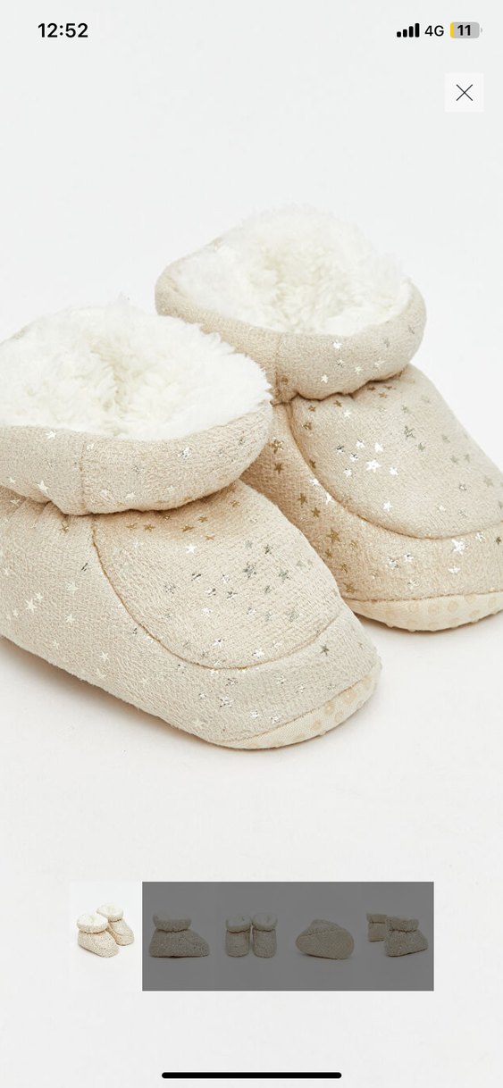 Yumuşak kürklü iç kısmı ve nakışlı yıldız desenleri olan beyaz kız çocuk ev terliği, sıcak ve rahat kullanım sağlar.