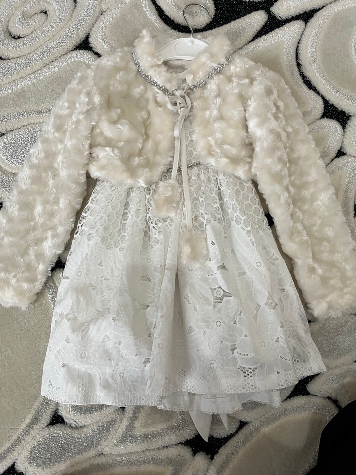 Kız Çocuk Beyaz Kürklü Nakışlı Elbise
