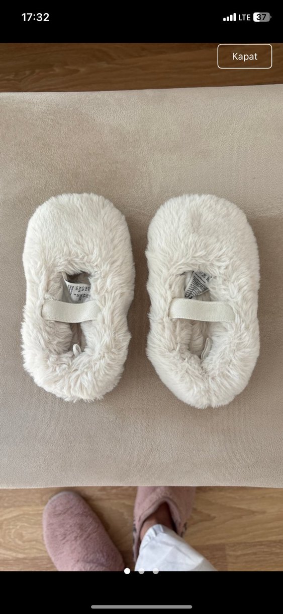 Beyaz renkli, kürklü detaylara sahip kız çocuk terlikleri, yumuşak ve sıcak kumaştan üretilmiştir. Elastik bantlı, sade ve desensiz tasarıma sahiptir.