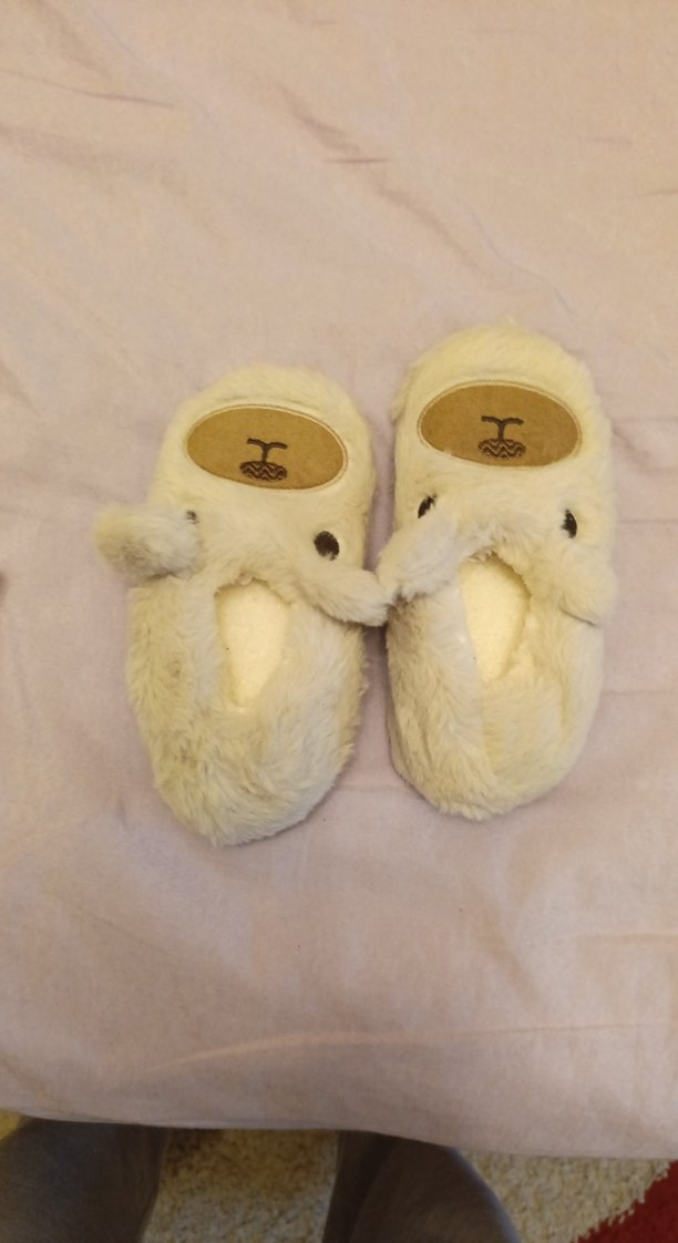 Kız çocukları için beyaz renkte, kürklü detaylara sahip yumuşak ve sıcak panduflar, sade ve klasik tasarımlı.