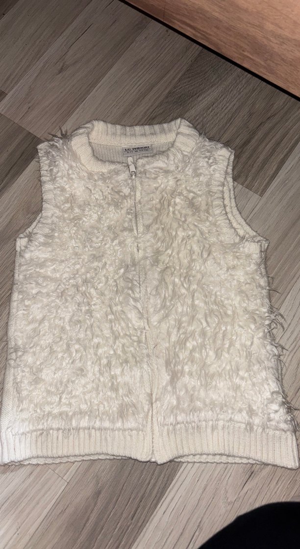 Kız Çocuk Beyaz Kürklü Yün Yelek