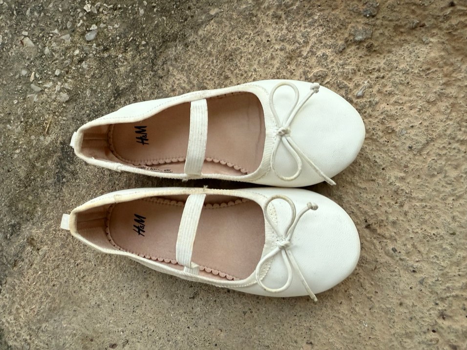 Lastikli bantlı beyaz kız çocuk babetleri, rahatlık ve modern klasik tarz sunar. Kauçuk tabanlıdır. Orjinal H&M marka