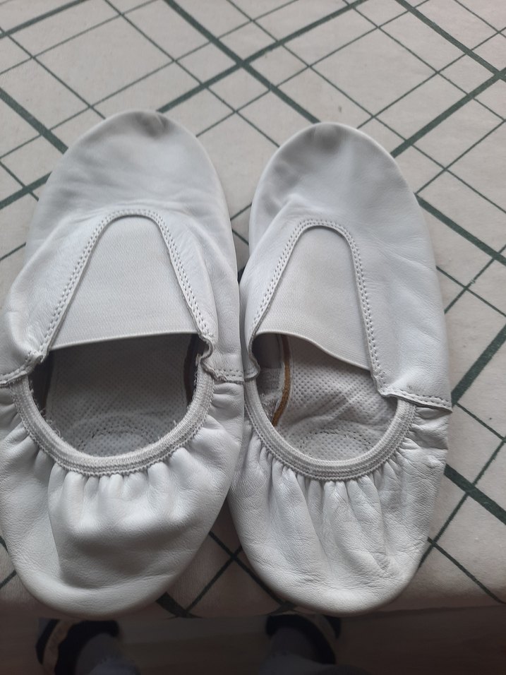 Kız çocukları için lastikli, yumuşak kauçuk malzemeden beyaz bale ayakkabısı. Rahat kullanım için sade ve desensiz tasarım. Deridir ve deforme yoktur,tam numara