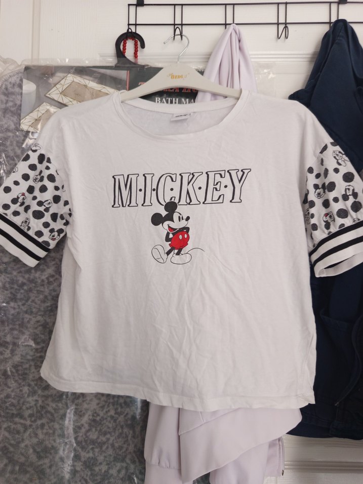 Pamuk kumaştan yapılmış, rahat kesim kısa kollu kız çocuk tişörtü. Mickey baskısı ve desenli kollarıyla sokak tarzına uygun.