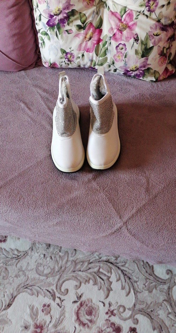 Beyaz kız çocuk botları, kauçuk malzemeden, gri cırt cırtlı ve yumuşak iç astarlı, modern tarzda.