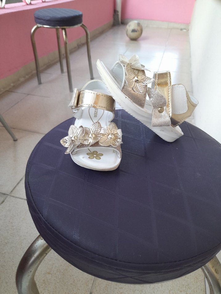 Nakışlı çiçek detaylı, cırt cırtlı beyaz kız çocuk sandalet, hafif kauçuk tabanlı, çağdaş tasarımlı.