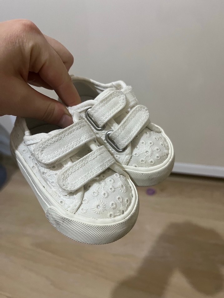 Kız Çocuk Beyaz Nakışlı Cırt Cırtlı Spor Ayakkabı