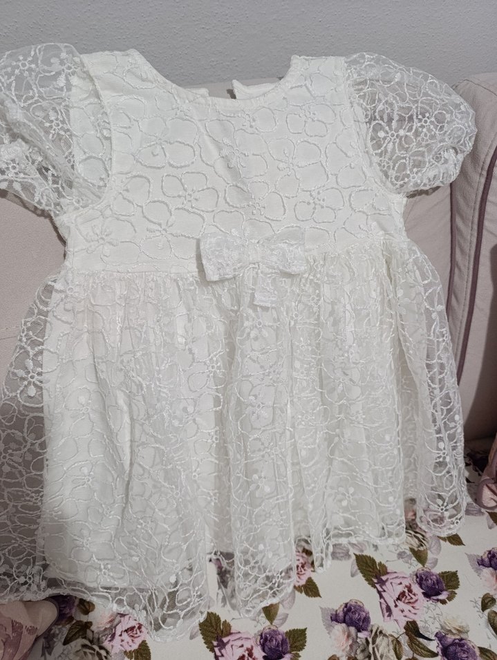 Kız çocuklar için nakışlı tekstil kumaştan, kısa dantelli kollu, straplez yakalı, hafif beyaz renkli, bol kesim elbise. (5_6yas etiketli fakat 4-5 yas ıcın daha uygun)