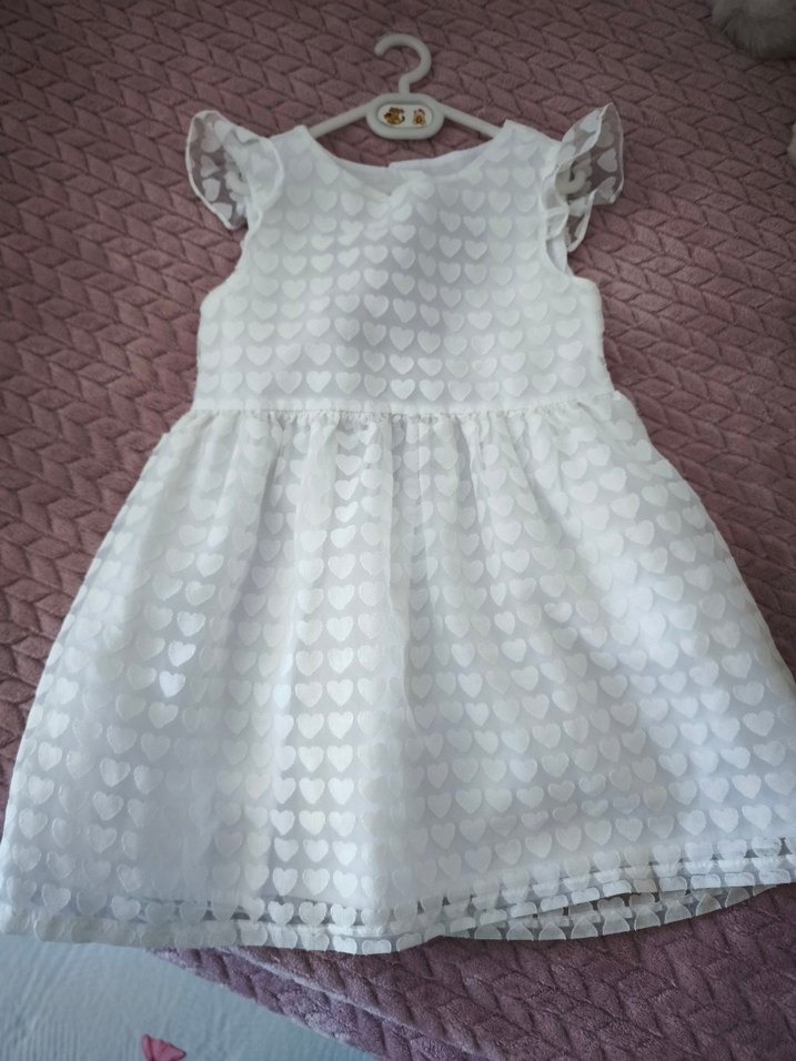 Kız çocuklar için beyaz nakışlı, fırfırlı kollu, askısız yakalı, bol kesim elbise. Sentetik kumaştan yapılmış, bohem ve klasik zarafet tarzında.Pamuk astarlı, arkasında kalp şeklinde pencere detayı var. Amerika'dan geldi doğum günleri için ideal.