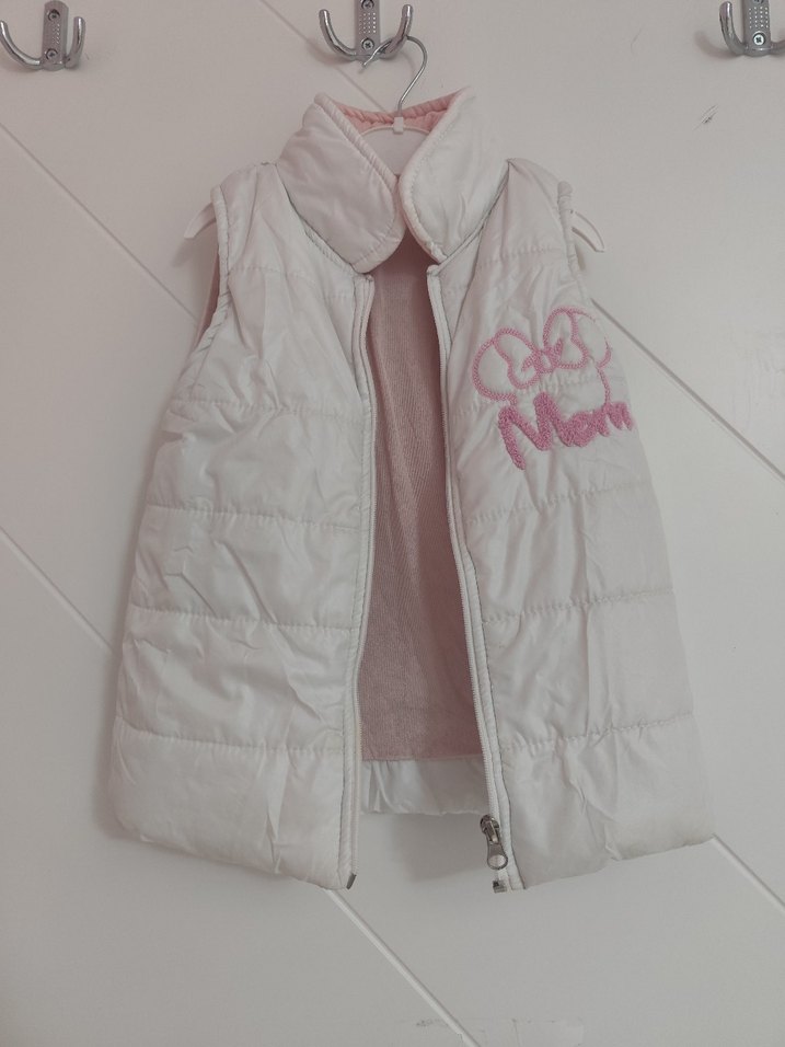 Beyaz, nakışlı, fermuarlı ve straplez yaka kız çocuk yeleği, yumuşak ve sıcak kumaştan, rahat sokak stili için uygun.