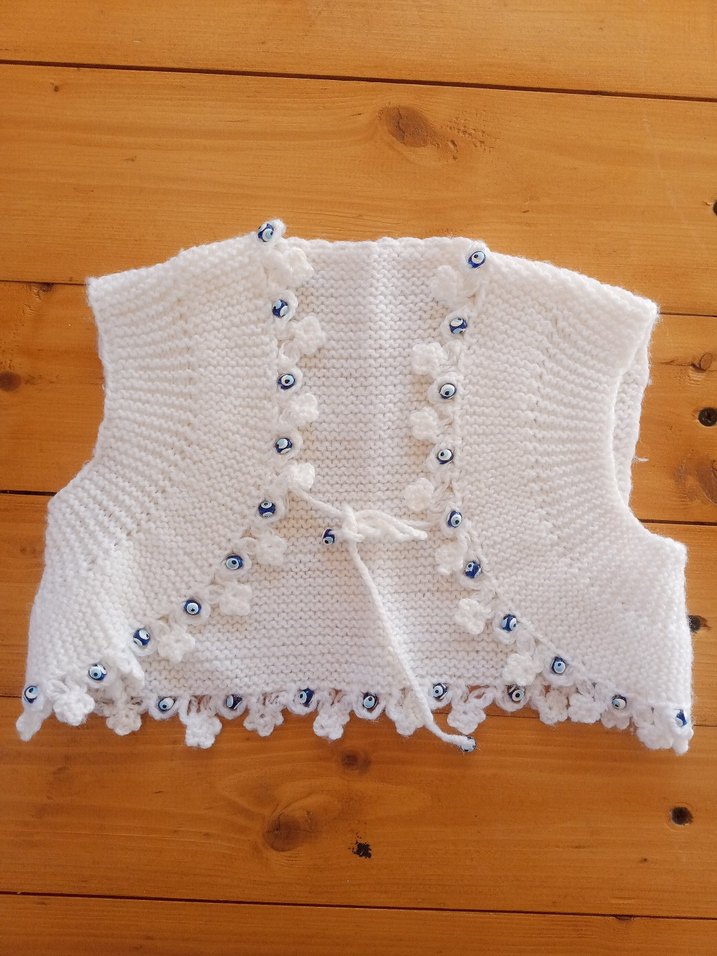 Kız Çocuk Beyaz Nakışlı Örgü Bolero