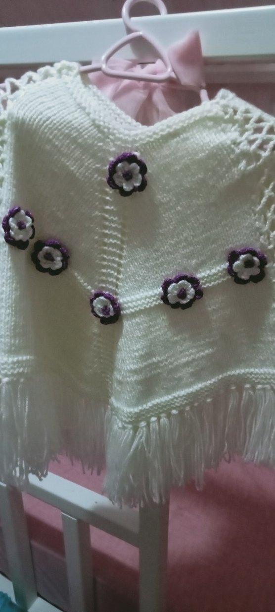 Kız Çocuk Beyaz Nakışlı Örgü Pelerin
